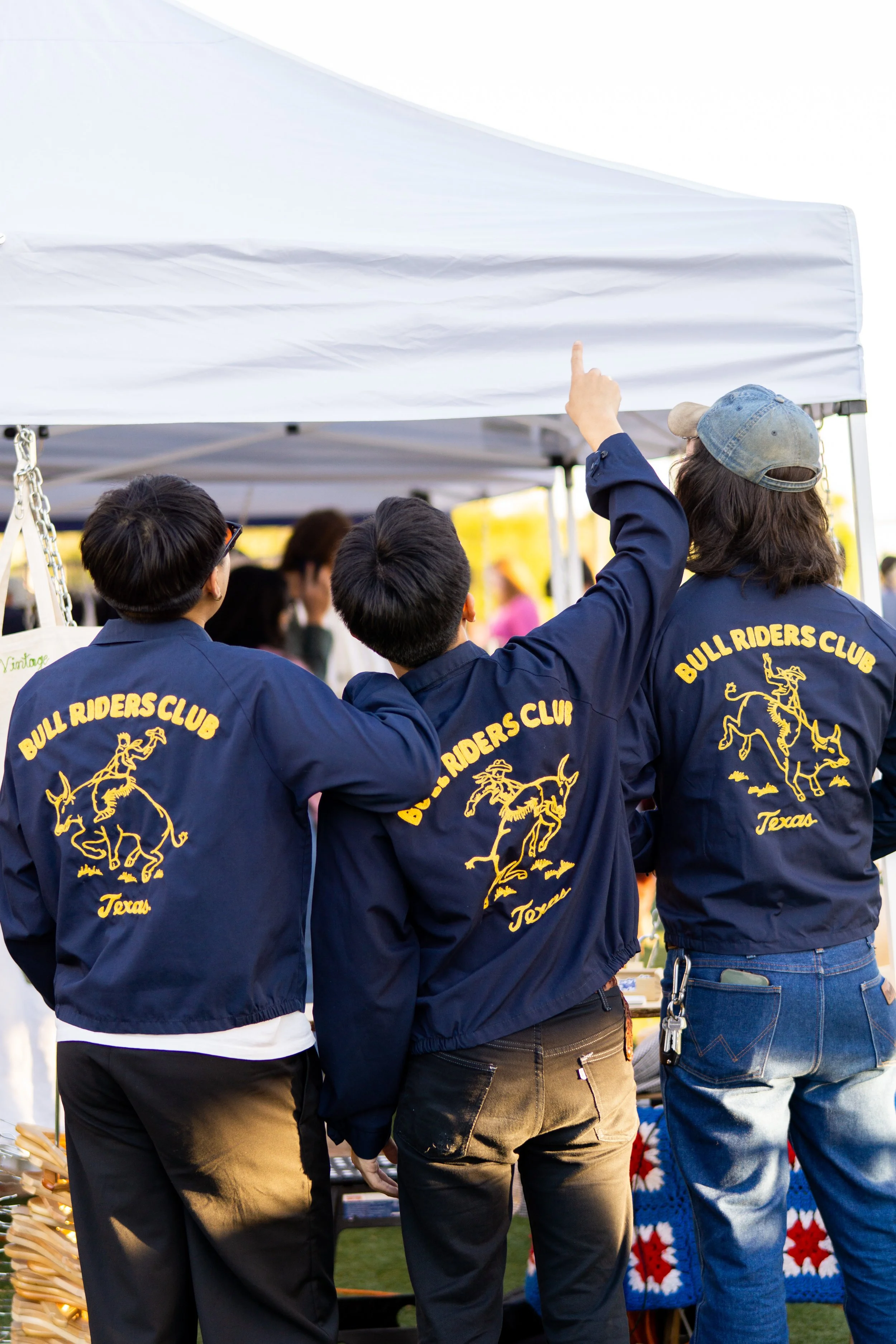 Custom “Bull Riders Club” designs drawn up and chainstitched on to vintage workwear jackets for Tristan and the team at Bygone Vintage.